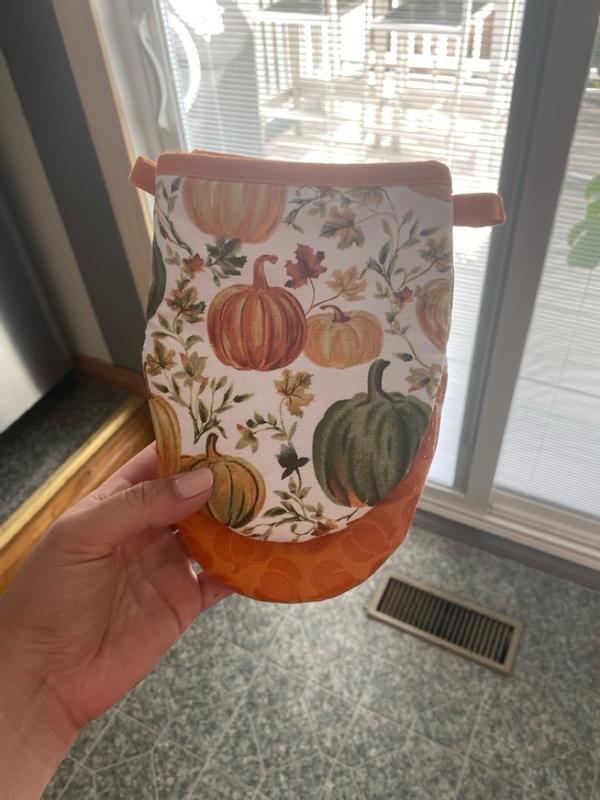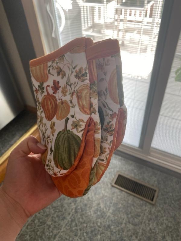 High quality! So cute for fall time for all the Halloween baking sessions. I love pumpkin and fall is my fav season so this was just perfect. It was aesthetically pleasing but also high quality and will last. Keeps my hand well protected when using hot oven dishes. Love it.
