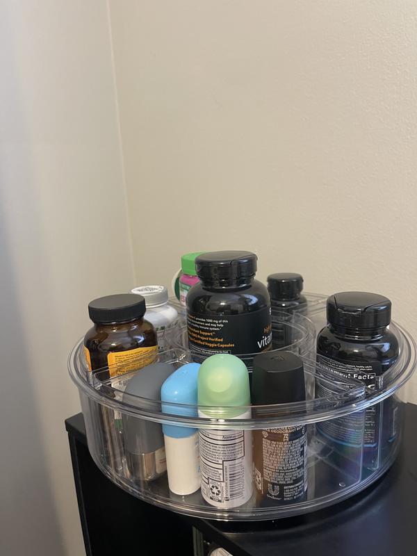 This Brody Divided Lazy Susan Organizer is great! The 5 removal bins are perfect and I love that they are removable. It's clear so it's easy to rotate and see what is where. It keeps my desk very organized yet adds a nice touch at the same time. It also holds a lot too which is a bonus. I will be getting a couple more of these and would recommend them!