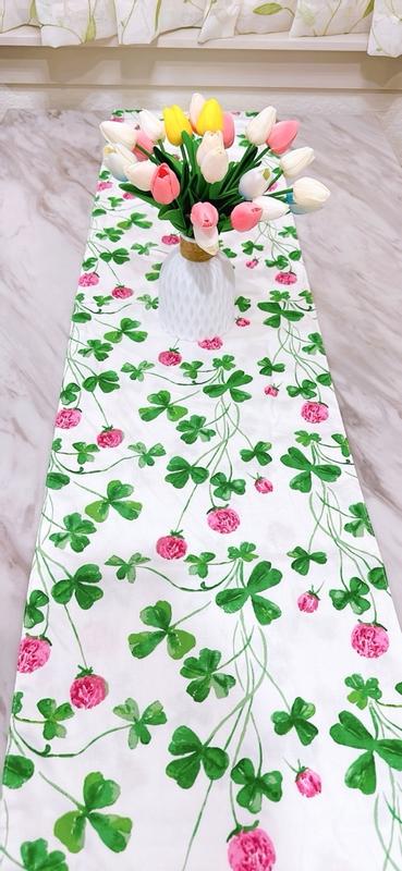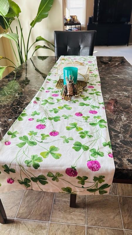 The size is perfect for my table. I love this three-leaf clover print that fit my house's decoration. The material is so soft and easy to ion before i use it. I can not wait to set it up for the holiday.