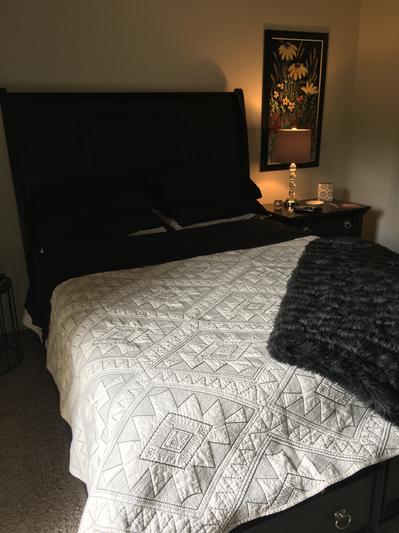 Happy with our light quilt that has a southwestern flair. It goes well with our gray sheets. Not too heavy or too light.