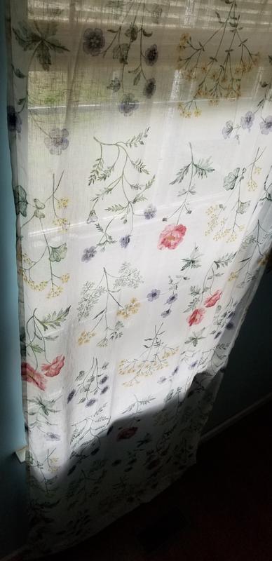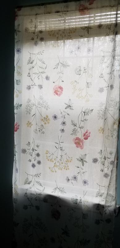 Love these high quality transclusent garden print curtains from Martha Stewart. It is very summery. The white background makes your room look bigger. The garden print is beautiful and tasteful. Great splash of color for any room. I replaced my regular blinds on my patio door with these and it makes such a big difference to the room decor! Would highly recommend it.