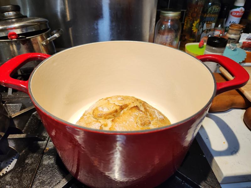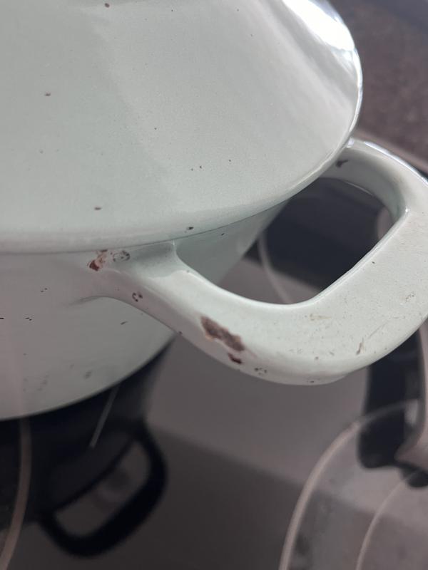 I bought this dutch oven in late 2023 and have only cooked with it on the stovetop, and it has basically been fine. Basically. Over this past weekend I put the Martha Stewart dutch oven (7-qt) in the oven for the first time and preheated it and the oven to 450° to bake some bread and… disaster. I pulled the product out to find that about a quarter of the bottom's enamel had chipped/peeled off. Horrible. Way past the warranty so now I have a very heavy piece of trash. I guess next time I will oven-ize the next non-MS dutch oven to make sure it will hold up under basic cooking methods.