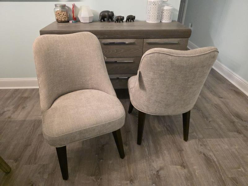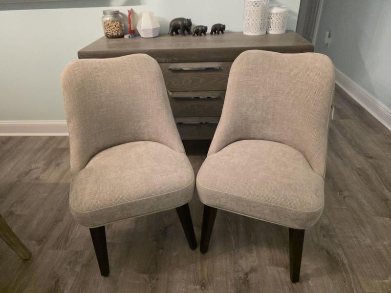 I received these chairs in exchange for my reciew. These chairs are super soft and a lovely warm neutral color. They were extremely easy to put together and were well packaged.