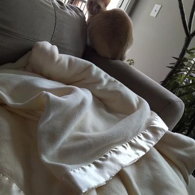 Beautiful light weight blanket with binding. Gold color is vibrant and pretty. Great sale price.