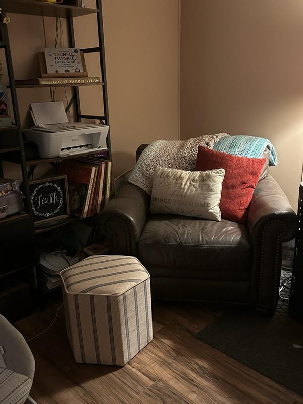Love this ottoman. I gave it 4/5 stars only because I wish it had a storage factor. Beside that it is very well made, looks great, is sturdy enough to sit on, and is the perfect size for all my needs. I like to use mine as a foot rest when reading in my book corner. This also makes for a good extra seat when family and friends visit.