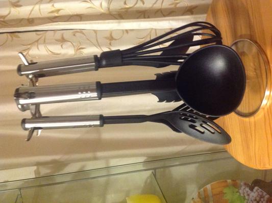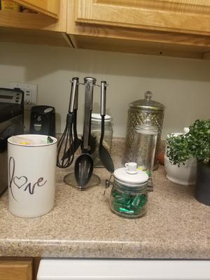 This is a carousel of utensils. It is weird looking and just not feasible for me. I returned it because I use so many different tools in the kitchen and this little thing made me think of some one that was maybe starting out but also is just not that great because it can only hold the tools that came with it!