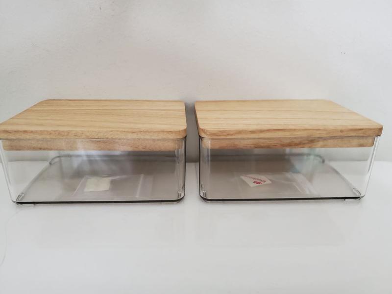 Love these little boxes. The white lid looks more polished than just clear. They’re a good size and I like that you can stack them. Perfect for kitchen or bathroom.