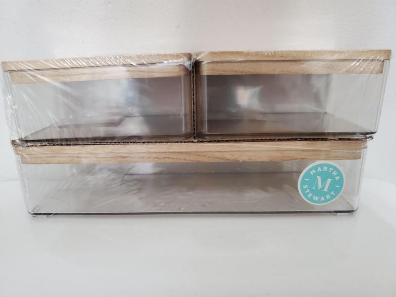 I can't wait to go through all my miscellaneous makeup and put them in these cute stackable storage boxes by Martha Stewart. It's a daily task getting all my makeup together in the morning to get ready. Having my makeup stored in these storage boxes will save a lot of time looking for what I need and make my life & makeup routine so much easier. Not only will these help me organize my sanity/vanity area they also look so cute and stylish.