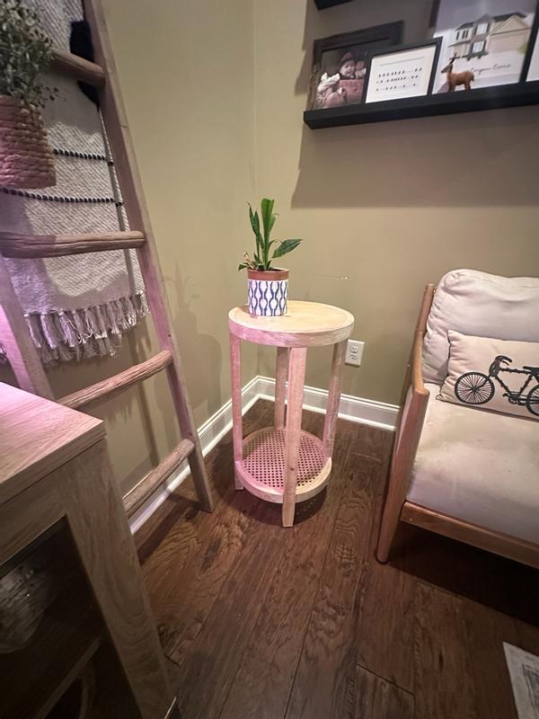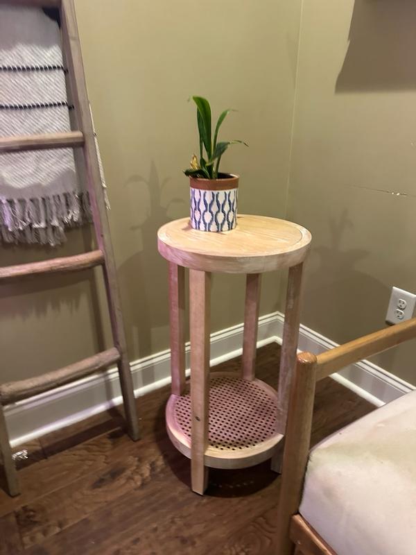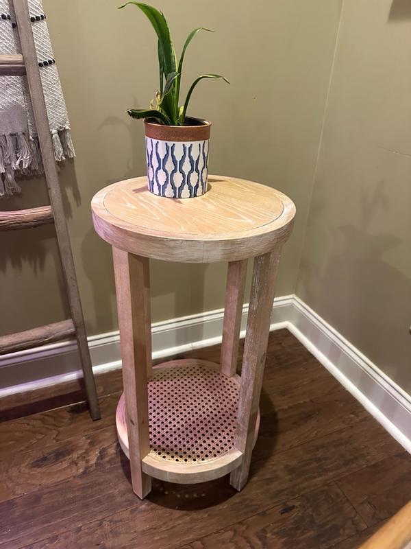 Martha Stewart Harley Farmhouse 15" Round Cane-inset Lower Shelf Storage Accent Table