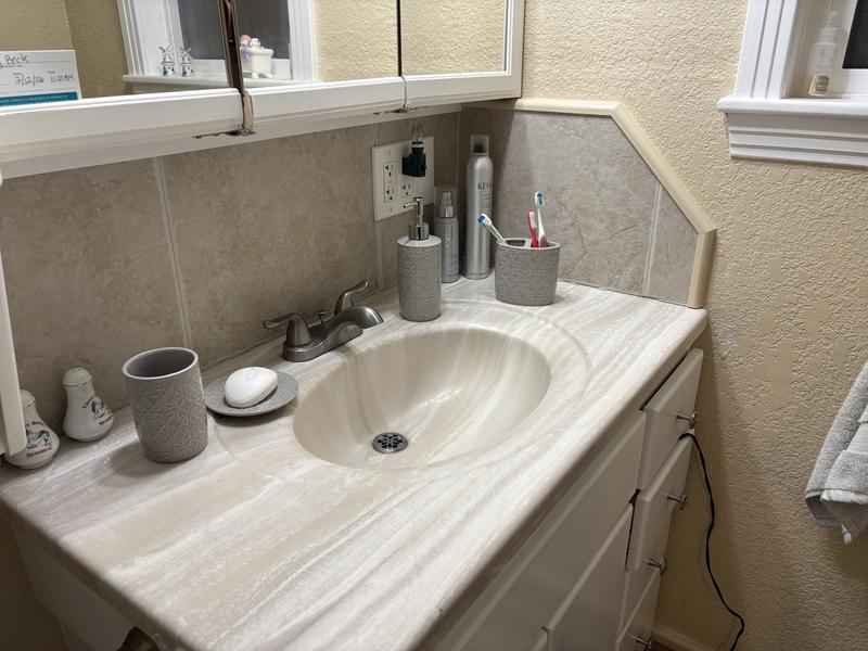 After returning this 4-item set because of a chipped soap dish, I received a replacement shipment, and nothing in the box matched. Liquid soap dispenser was clear glass. Instead of a toothpaste/toothbrush holder, I received a plastic tumbler with a design on it. A second plastic tumbler was supposed to be ceramic. And no soap dish. All 3 items returned today for refund. Don't buy this, you don't know what you'll get. Martha should be ashamed!