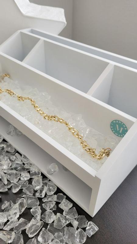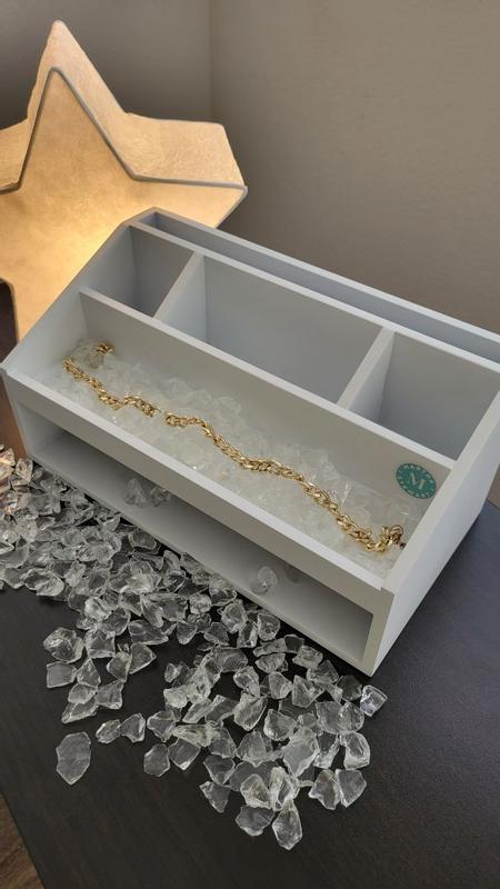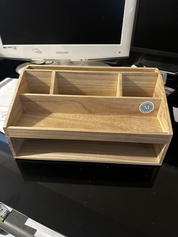 This organizer is so cute and chic! It’s made out of wood so it’s sturdy and has lots of compartments to put items everywhere! It has kept my desk so organized and neat.