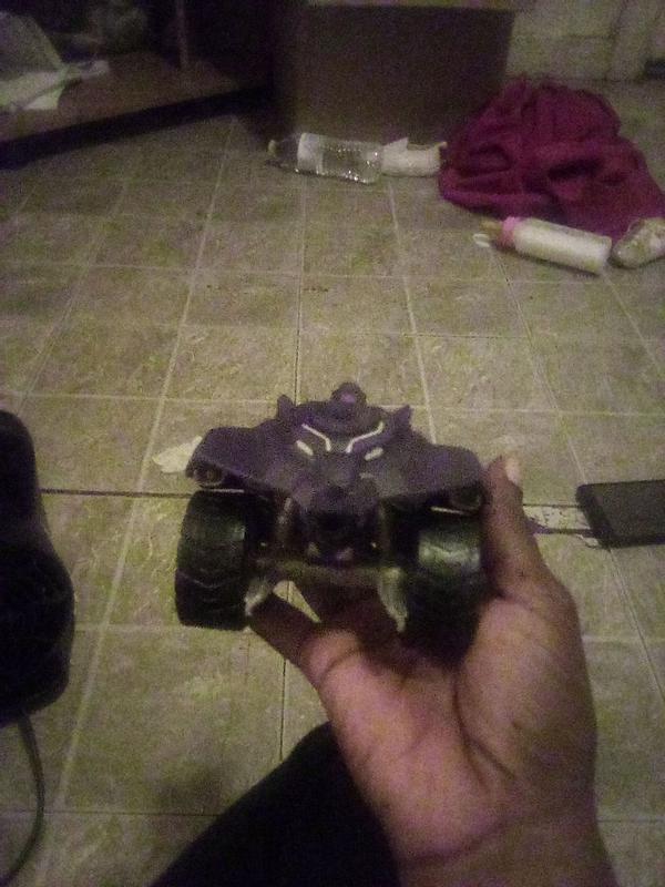 Black panther was top on his Christmas list this year . So for him to open this Christmas morning he was over the moon. He loves that he can have black panther drive on the fourwheeler . He also found out the fourwheeler shoots out which was a great surprise to him that he can really “save the day” with black panther .