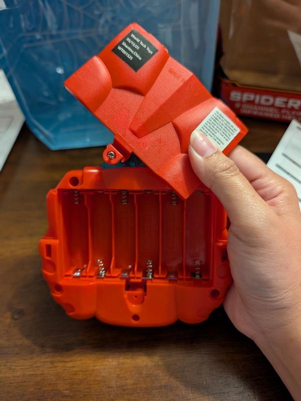 This toy is definitely a little more advance and takes some practicing to get it to go smoothly. For us, in order for Spiderman to stand up on his own all the blades have to be in the front otherwise it falls back. After it falls down the legs kind of comes apart. My little ones loves the sound it makes on the controller and the lights on the Spiderman. The controller itself needs 6 aa batteries and while charging there is a light on Spiderman chest that turns on. Once fully charge the light turns off.