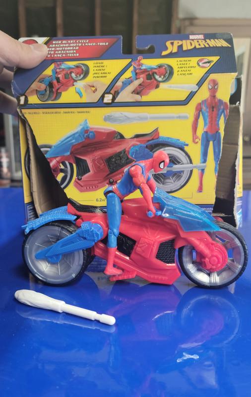 The spiderman web blast cycle toy works great. My son puts the "bad guys" Infront and spiderman can shot his web and knock them over. The toy is really sturdy . I also like it has great detail and made very well!