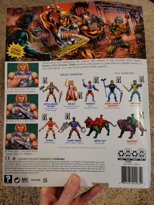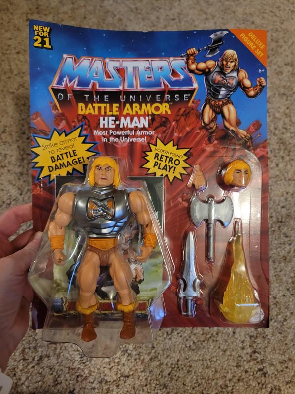 I just had to get this for my son. His Dad loved he-man when he was little. This reminded him of his childhood! The figure is made well, and has a cool feature on its chest armor. The battle armor is a really neat idea. Also like that there is a different set of a head and a hand so you can change he-man up. Also includes different weapons. I’m not sure my husband will give this back to my son to actually play with! Lol