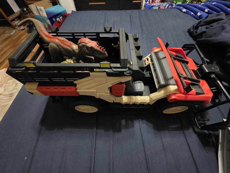 I got this my son and he loves it. The cage in front is a fun feature for him to catch the dinosaur. The remote control is easy to use and the battery life lasts a long time before having to recharge. The size of the truck for transport and he likes to bring it with him everywhere. I would recommend this to anyone and especially JW lovers.