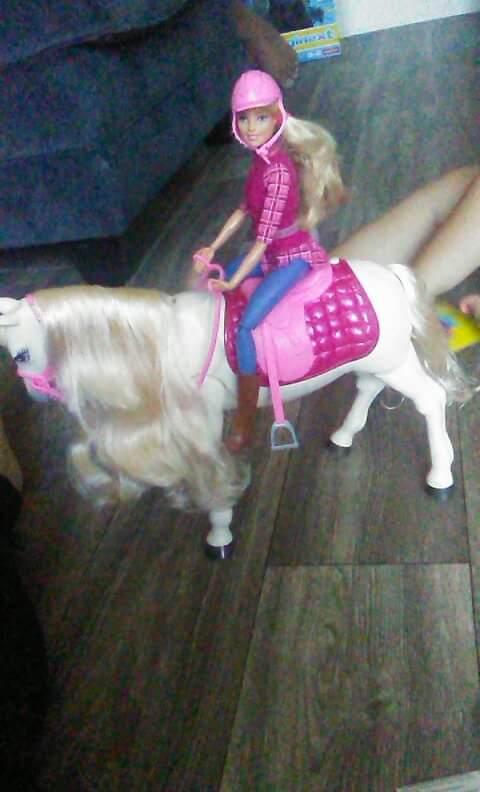 This is such a great toy, even better than I thought it would be. It is quite expensive but I think it's worth it as its something new and different and adds a lovely item to my children's Barbie collection. Barbie can actually go riding! The horse itself moves and interacts with you. It takes a bit of getting to though. It comes with a few accessories (carrots, and a brush) and a Barbie. I think this is a fantastic toy and my children have very much enjoyed playing with it.