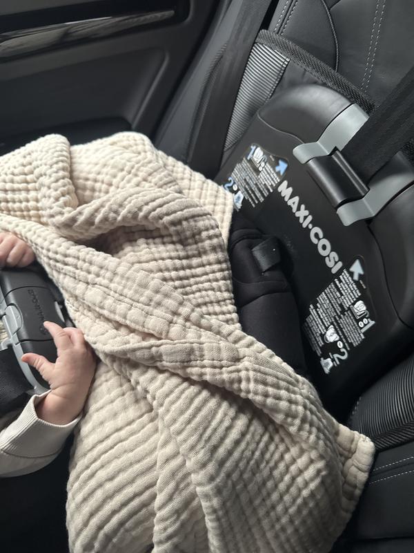 The textile is very smooth and easy to clean. My baby loves it and able to fall asleep on it as well in the car ride. The only con I find is the turning mechanism, it is hard with just one hand and arm if you are carrying a baby. You need one hand to press in the front and use another hand to turn the car seat around. The seatbelt with non slippery shoulder strap as well as magnetic buckle is great. It prevents from twisting around as well as using so much effort on thumb to unlock. This is an almost perfect design for baby car seat.