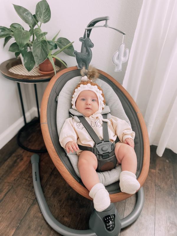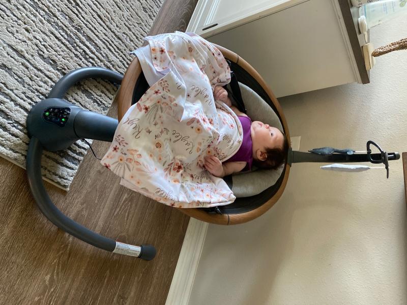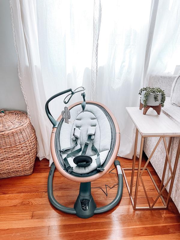 This swing is made so well and beautiful, it blends with our decor and doesn't look like a typical colorful baby swing! I love all of the features and the baby loves it as well! It's also very soft.