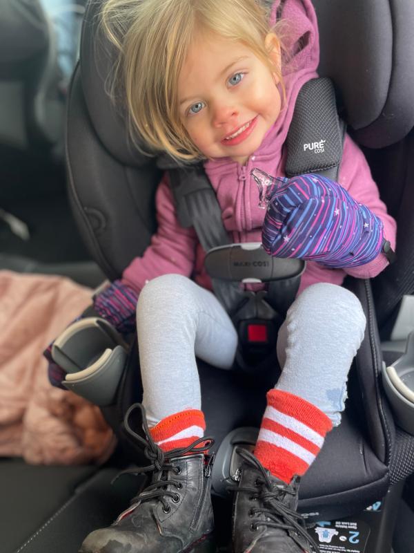We LOVE the thoughtful design of all 8 of our Maxi Cosi car seats that we have had over the years... BUT... For the arrival of our 4th baby we got two of the Emme seats and I was so excited to have a rotating car seat. However, my by brand new 4 week old baby has his hands and wrists scraped to the point of bleeding each time he is in these seats from the sharp edges of the velcro on the chest strap covers. For the longest time I couldn't figure out what was cutting him up - because who expects the car seat to cause that?!? Once we figured it out, we tried everything to remove the sharp edges, but I can't cut the sharp parts down since it is so close to the seam. Now my baby has long socks over his hands and arms in order to safely ride in his seat. For such an expensive seat, I expected better Human Factors engineering. I would rate the rest of this seat a 10/10, but this one issue caused injury and bleeding to my newborn. A simple design change to the same "Out-Of-The-Way" strap covers as the other Pria Max and Magellen Max seats would make a big difference. Also use snaps instead of velcro! That would make a world of difference.