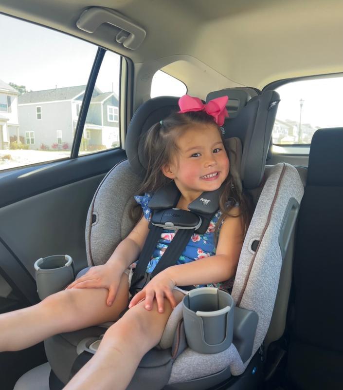 I purchased our daughter one just in time for our road trips, she loves this seat. It’s easy to clean and we love the 360 rotation feature. This seat was one of my favorite investments.