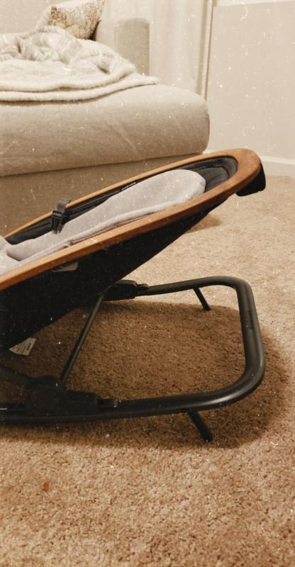 This rocker is stylish but not the best functionally. When reclining it down to the lowest setting, it does not lock in place. It's also a little rough/uneven when rocking, it's not a smooth glide, which is kind of the whole point of the product. I wish I would have gotten the baby bjorn for more money.