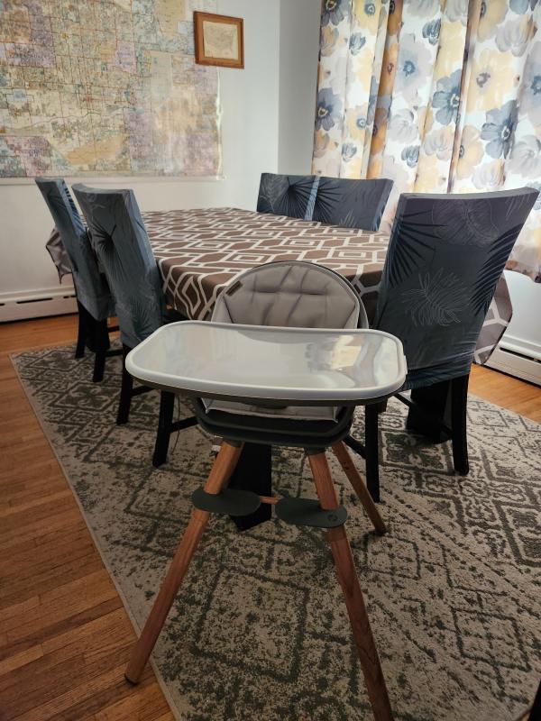 I love how this high chair will carry me through for years to come. It is stylish and very comfortable for my baby. It is also very easy to assemble. The only reason I am not giving it 5 stars is because I wish it was taller in height. I am 5'9 and feel like I have to bend down.