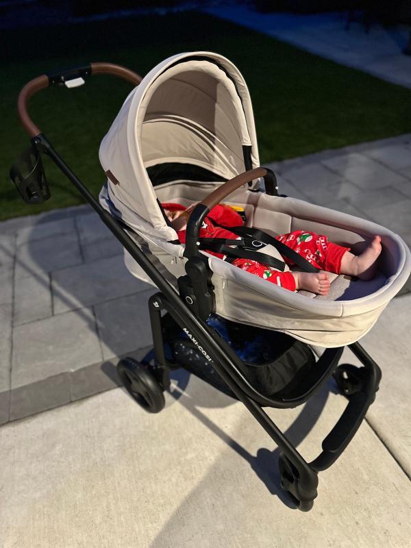 I received the Maxi-Cosi Tayla™ Max Modular Stroller through the Stellar Product Testing Panel! Wow - this is the best stroller we have ever used. First off, the stroller looks so chic with the beautiful soft fabric and the brown leather details on the front bar and the top handle. The fabric is easily removed and machine washable which is a must with our kids. This stroller is so versatile for both babies and toddlers. We were able to use this for our almost 2-year-old at a holiday parade and he stayed in it the entire time because he was so comfortable! I feel the best part though is the QuickCarriage mode which allows us to lay our 2-month-old flat on walks when he falls asleep. Plus, the HUGE canopy extends over the seat to protect both kiddos from the elements no matter what mode it is in! The ride was very smooth both on our sidewalks and when we took it off road on the Christmas tree farm! I will say the one-handed fold took a bit of practice - but once we got the hang of it, it is truly much easier than any other full-size stroller we have ever had. We have purchased strollers far more expensive than the Tayla in the past but have never been as thrilled with the functionality and versatility of any of them as much as this one. I highly recommend to any parents with newborns, infants and toddlers!