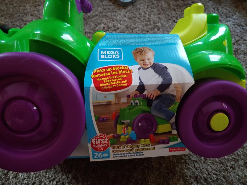 This toy is awesome! I love that it's a ride on toy and can be played with not being ridden on. I also love that the blocks actually do get picked up when you run them over. It's great that it stores the blocks for you and encourages the kids to clean up! My son thinks it's so funny when the alligator "eats" the blocks!