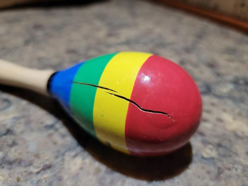 Our 11 month old managed to smash the tambourine - I found a piece of broken wood in her crib. Pretty scary.