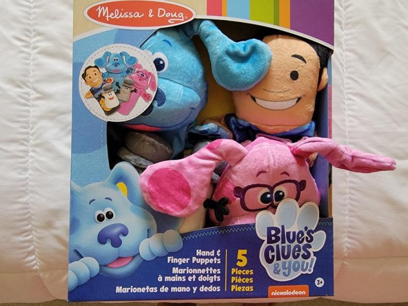 These new Blues Clues hand and finger puppets are just too cute. I love that this set includes Josh, Blue, Magenta and Mr Salt and Mrs Pepper! My kid loves Blues Clues so much and also loves hand puppets so its just the coolest New toy we have seen in awhile! The hand puppets are very well made, they are like actual plush toys versus just a shell with a design. Mr Salt and Mrs Pepper have openings on the bottom to use as finger puppets. Josh has a guitar on his body so you are able to make it look like he is playing the guitar! Very thoughtful details to spark imaginations.I think this is so nice that Melissa and Doug are expanding more collaborations because my kid has a collection going by them. Overall me and my kid are very impressed with how vibrant and closely matches the characters! Durable, vibrant colors and easy to spot clean. Highly recommend!