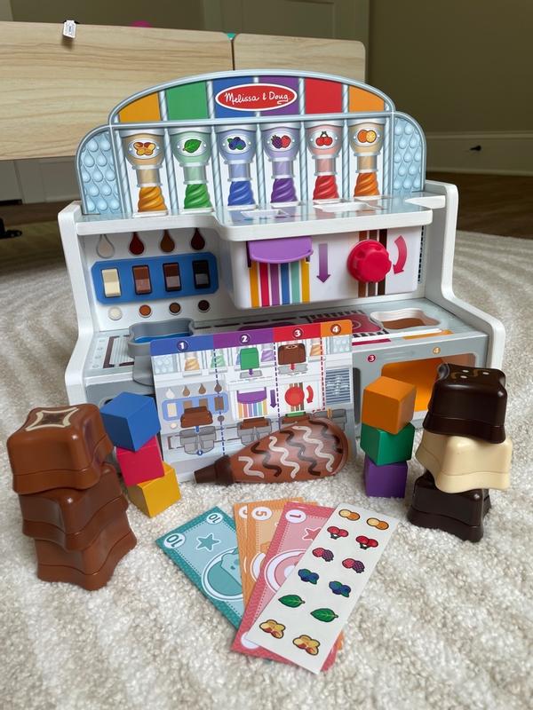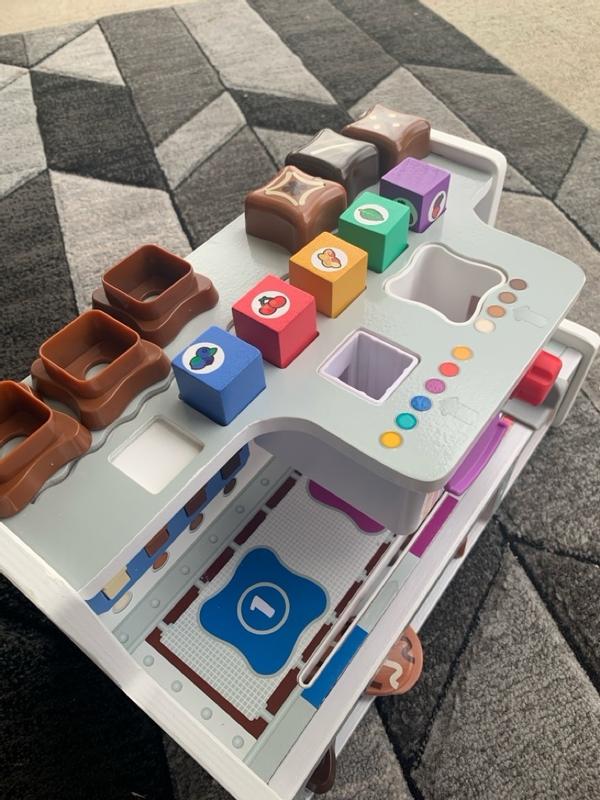 This toy was overall fun, my kids love playing with it. Me personally I like that it helps show the kids how to do things in order and the numbers and colors. My kids also like learning about money, The only downside is how the blocks get stuck when trying to build the chocolate.