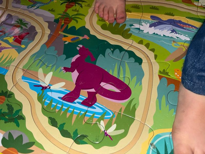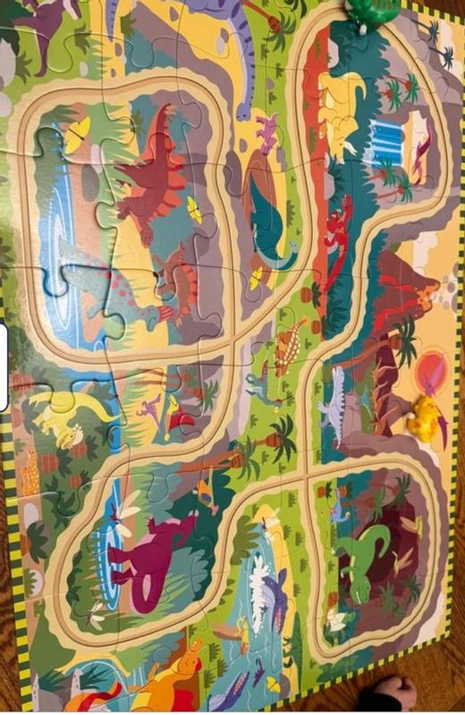 My 3 1/2 year old Autistic grandson loves this puzzle. And the dinos running around it were a bonus!!!