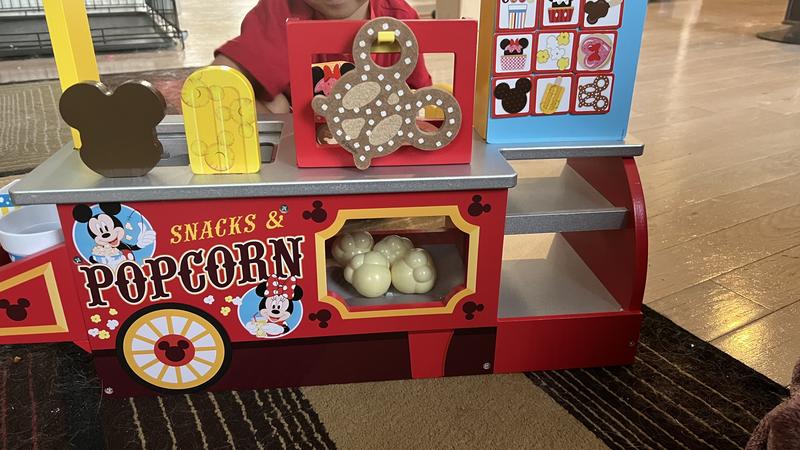 The popcorn Mini Snack Cart has been so much fun for our little girl. She loves to get behind her cart and start "Selling" her popcorn. We think she overcharges us but we pay up anyway! She feels important while stating behind the cart, taking our orders, and then making us watch as her popcorn pops. She's a huge Disney fan and also a huge Popcorn fan. So, I don't see how this could have gone wrong.
