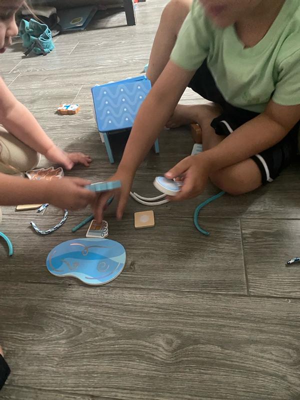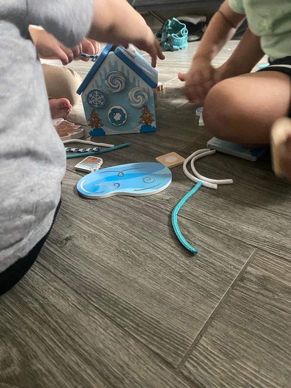 Super cute play set! High quality thick wooden material that is durable and easy to play with. The set comes with a lot of pieces and my child was able to make many different versions of a gingerbread house. We love this set and will use it for a longtime!