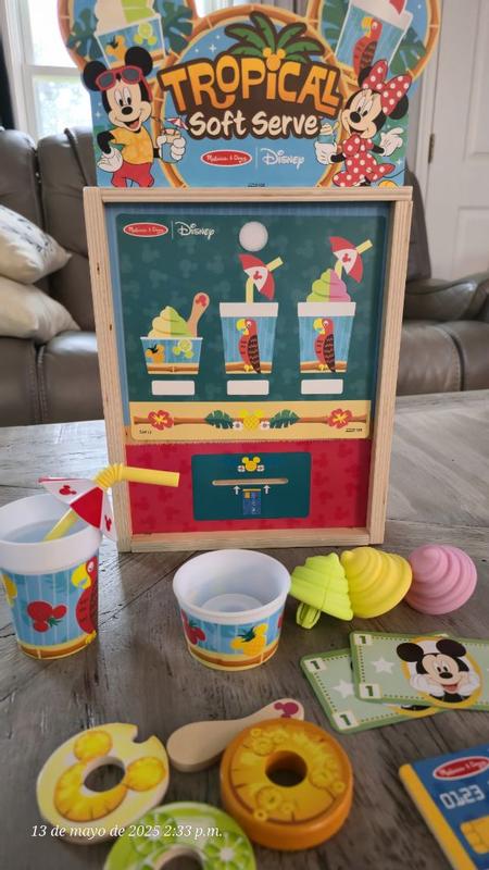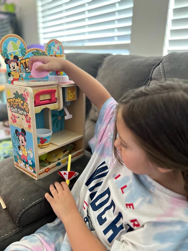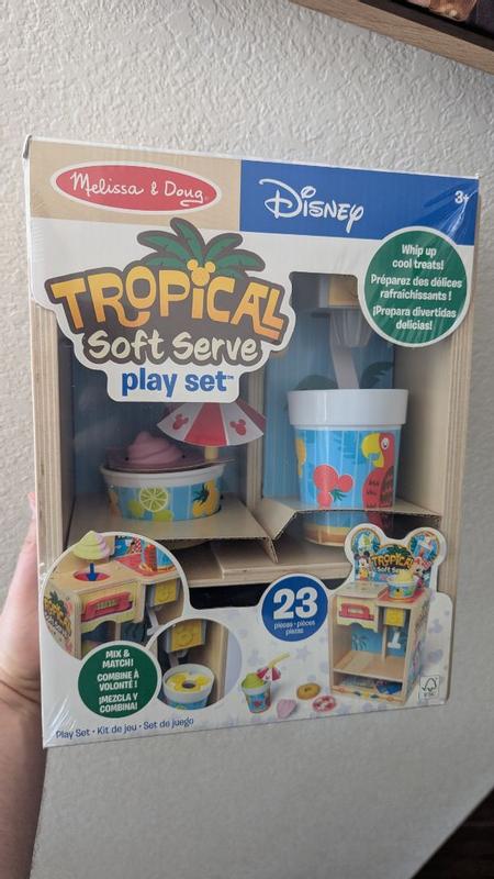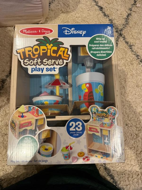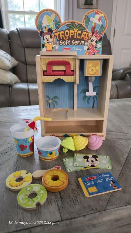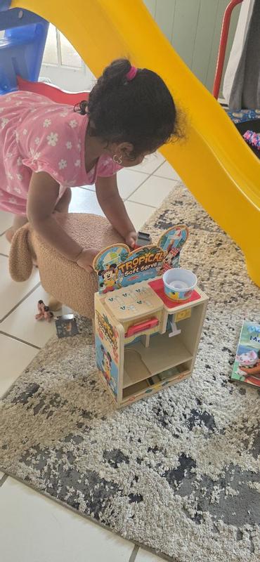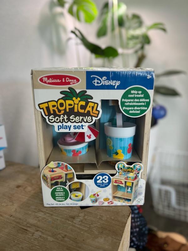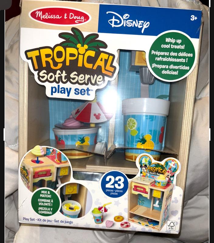 The Melissa and Doug Disney woorden tropical soft serve pretend play set is a big hit with my 3 and 5 year old boys. They okay together for a long time, ordering ice cream, paying etc. Very cute