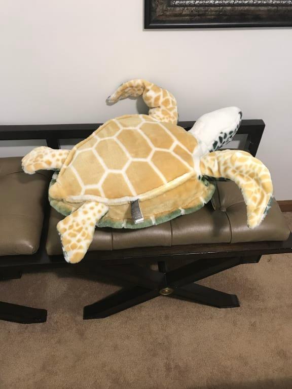 The giant turtle was the perfect gift for our granddaughter and she hugged it all day. The item was well made and the price was fair and the service was excellent