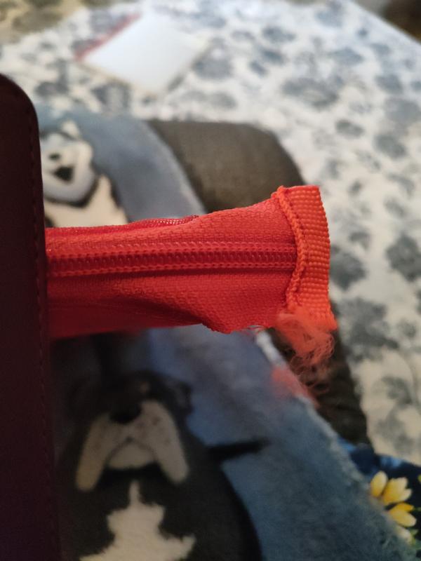 The bag is so tight that my child is having a really hard time getting the stencils in (it truly is a bit challenging). The zipper is fraying after one day.