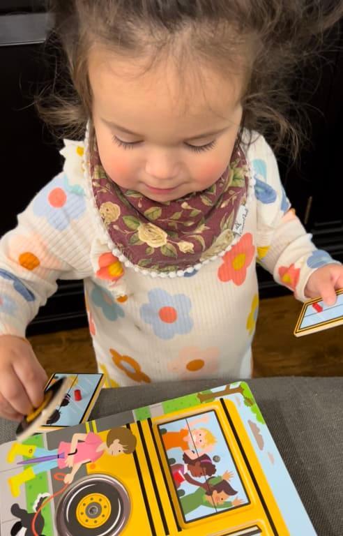My 2 year old granddaughter loves this puzzle. She takes out the pieces and imitates the movements in the song. It’s one of the things that she plays with every time she visits.