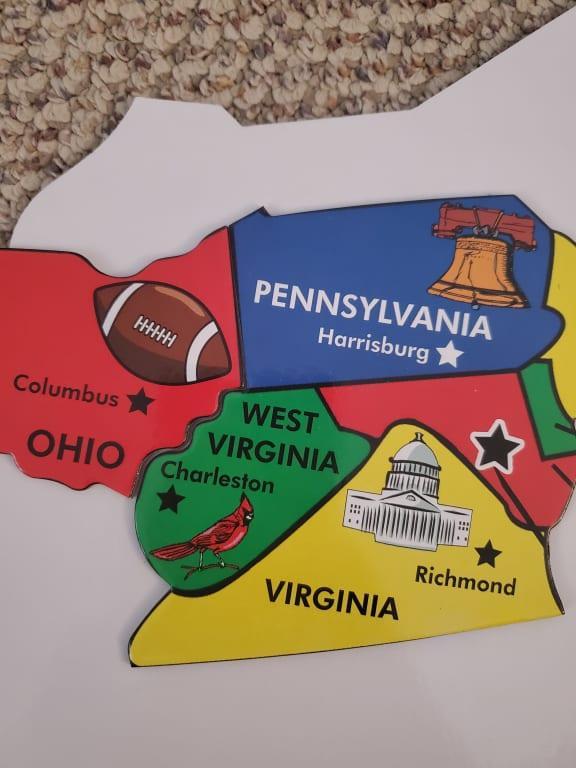 This map is not an accurate representation of state shapes, particularly the delmarva peninsula, which encompasses delaware maryland and Virginia. Delawares shape and placement is completely wrong. My kids were disappointed to see their state so poorly portrayed.