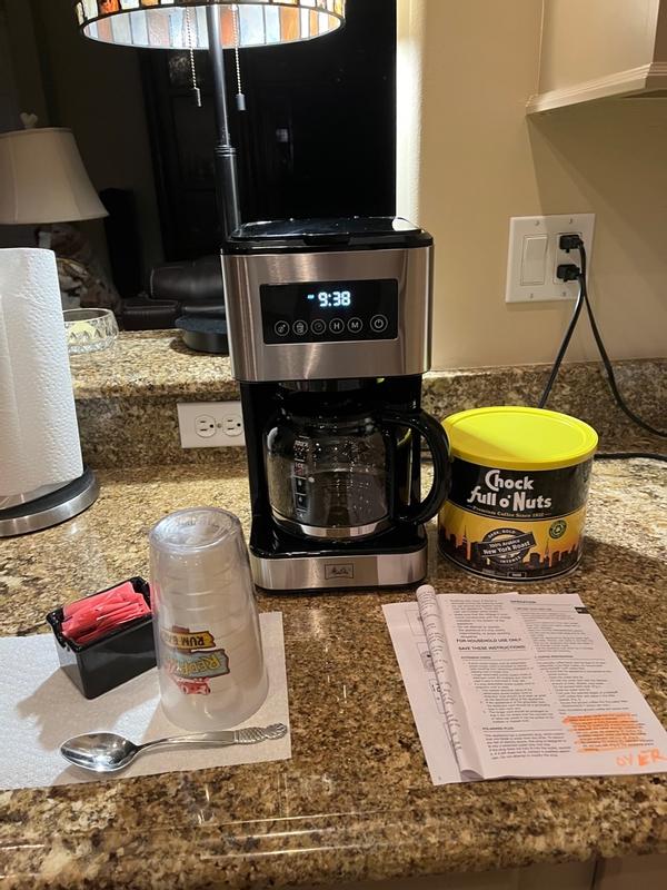 I have been using the Melitta Aroma Tocco Plus for about 2 weeks now and the coffee is great! The overall look of the machine is contemporary and not overly-sized which I appreciate with my limited cabinet space. I do like that I can pre-schedule my coffee so that it is already brewed and waiting on me when I get out of bed. The bold drip feature is a plus as my husband likes his coffee strong and dark. Cleaning the machine is simple as I can use white vinigar followed by running a couple pots of clear water through it. The only cons that I could find on this machine is that the cord is pretty short and the water canister insert is small so I tend to spill water when trying to fill it up. Overall this is a good machine and I’m hoping to get many, many mornings out of it.