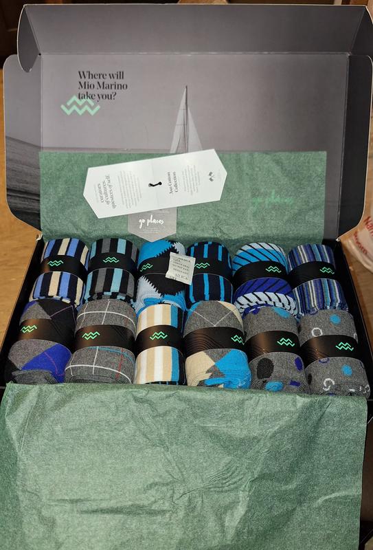 They came shipped in this nifty box. Reminiscent of a box of chocolates. So I didn't know what they were until I opened it and to my surprise. 10 delicious pairs of casual/ dress socks. I'm totally enamored with the artistry that was put into each pair. I'll buy more and i urge you to do the same. Crazy fast shipping as well!