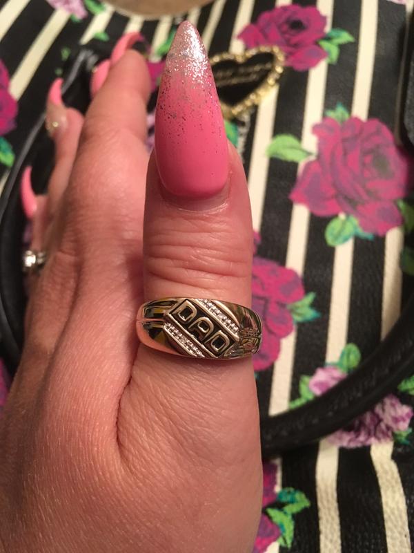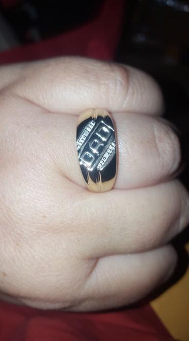 I love this Dad ring. The diamonds accents are beautiful. Very comfortable to wear because it's not heavy. Made with excellent quality because I use it almost everyday and the color is still bright. I recommend it.