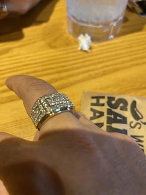 Decent ring . Got it on sale. Expected it to be a little heavier in weight. But the diamonds shine. It fits the right size as well.