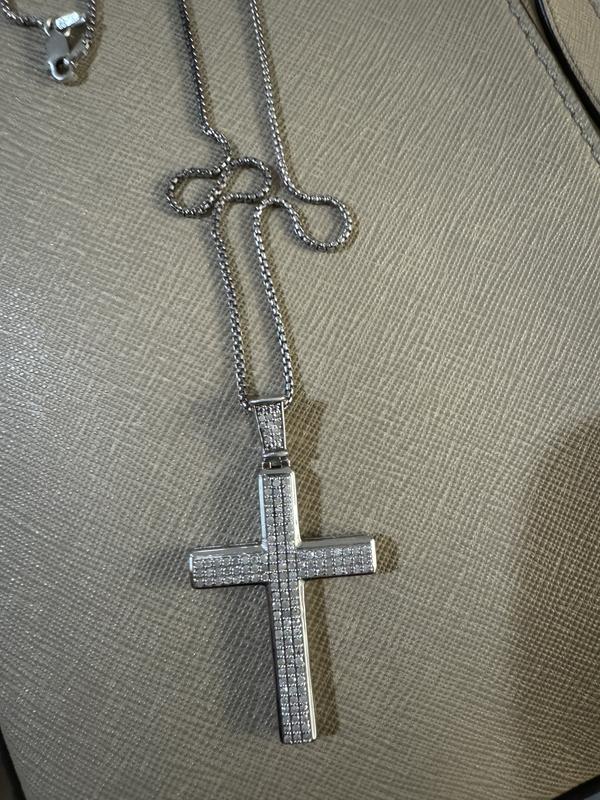 Absolutely Beautiful! These are the first diamonds I've ever bought for myself. I couldnt ask for a better necklace. Some men may want a thicker chain, but I'm good with the entire chain and Cross pendant. I highly recommend for any man looking for a shiny gorgeous cross necklace!