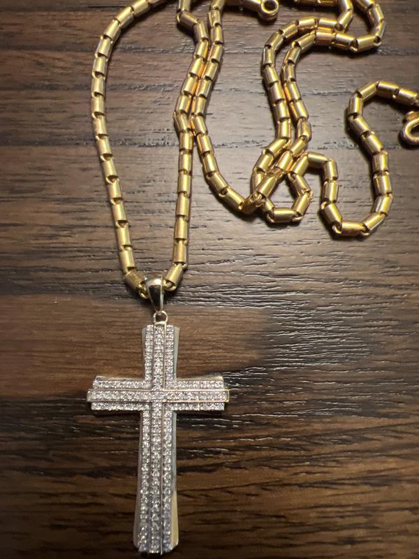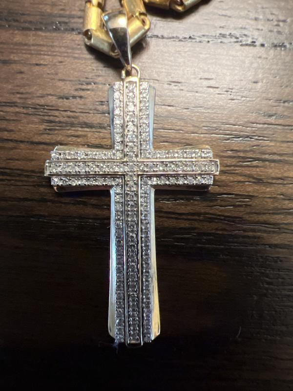 The diamond cross pendant I just purchased was a good size, very good quality, beautiful workmanship, style is elegant. The placement of the diamonds are perfect and not too flashy for everyday wear. I am very satisfied and very happy for my purchase.