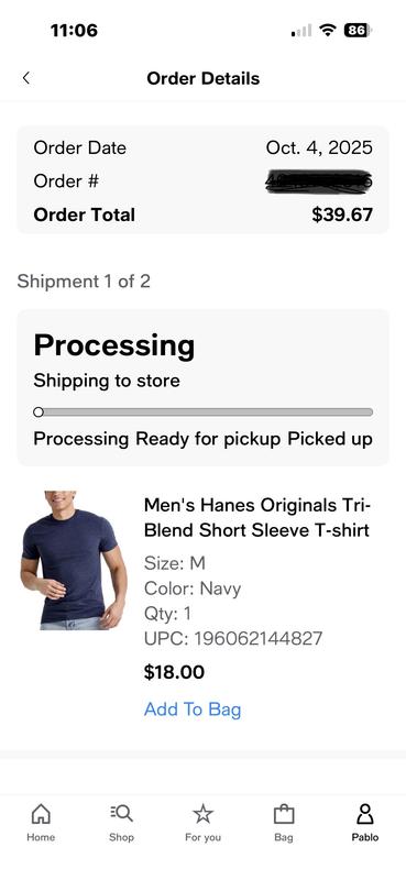 Not received so can’t review. My ship to store is way overdue and the site still shows as “Processong” Shirt was ordered on Oct 4th.