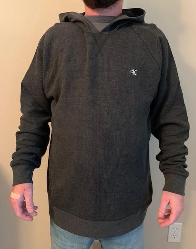 This Calvin Klein hoodie is soft and comfortable. It has a great fit and true to size. I found the hoodie to be great quality and well made. Nice to wear on a chilly day!