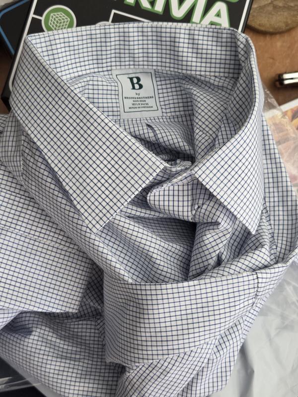 B By Brooks BrothersMen's Regular Fit Non-Iron Polo Button-Down Collar Blue Check Pinpoint Dress Shirt