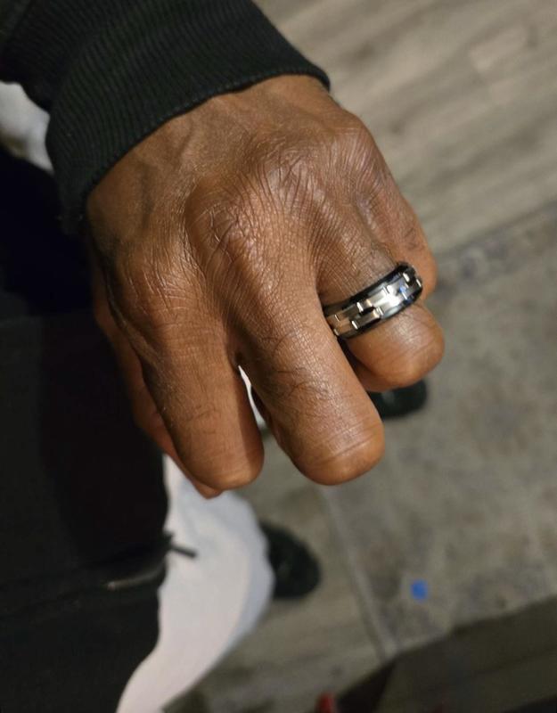 It was a gift for my man but he did not like the way that this ring stay in his hand. Maybe his finger are short but the ring was nice and the color too.The only problem was that my man doesn' t too thick.